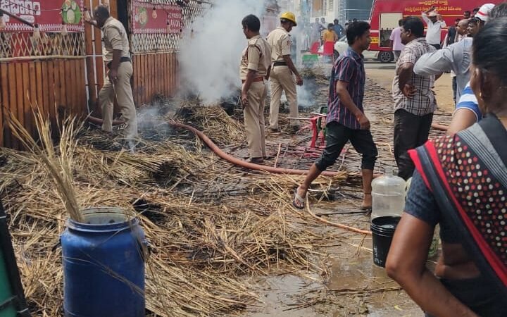 విశాఖపట్నం గాజువాక ( పున్నమి ప్రతినిధి): గాజువాక రాజీవ్నగర్ సమీపంలోని రాజభోగం హోటల్ టిఫిన్ సెక్షన్గా నిర్మించిన పూరి గుడిసెలో అగ్ని ప్రమాదం సంభవించింది. సమాచారం అందుకున్న అగ్నిమాపక సిబ్బంది తక్షణమే సంఘటనా స్థలానికి చేరుకుని మంటలను పూర్తిగా అదుపులోకి తీసుకువచ్చారు. దీపావళి పండుగ సందర్భంగా ఎవరో వెలిగించిన తరజువ్వ గుడిసె పైకప్పుపై పడటంతో మంటలు చెలరేగినట్టు ప్రాథమిక సమాచారం. అదృష్టవశాత్తూ ఈ ప్రమాదంలో ఎవరికీ ఎటువంటి గాయాలు జరగలేదు. అయితే గుడిసె పైకప్పు పూర్తిగా దగ్ధమైపోయింది.