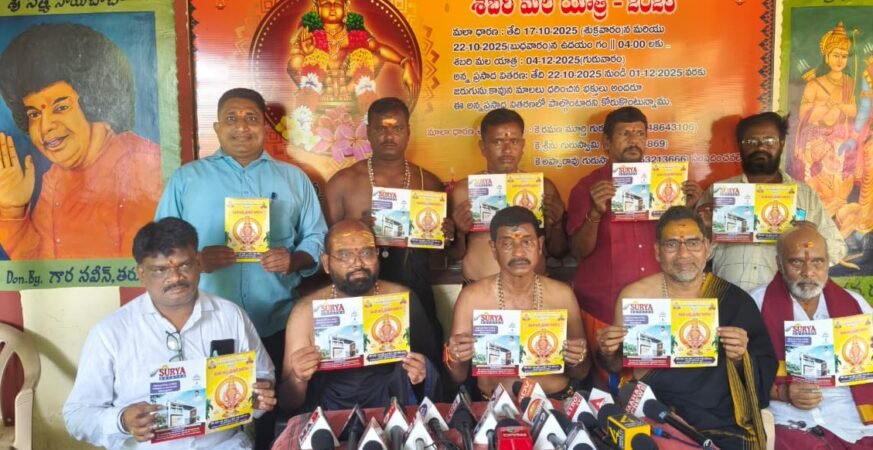 విశాఖపట్నం అక్టోబర్ పున్నమి ప్రతినిధి: శ్రీహరి హరాత్మజ అన్నదాన చారిటబుల్ ట్రస్ట్, శ్రీ కోదండరామ ఆలయ కమిటీ ఆధ్వర్యంలో ఈ నెల 22వ తేదీ నుండి డిసెంబర్ 1వ తేదీ వరకు మండలకాల మహా అన్న ప్రసాద వితరణ మహోత్సవం నిర్వహిస్తున్నట్లు ట్రస్ట్ అధ్యక్షులు కంచుమూర్తి వెంకటరమణమూర్తి తెలిపారు. వైర్లెస్ కాలనీ కోదండ రామాలయంలో ఏర్పాటు చేసిన మీడియా సమావేశంలో స్వామి మాట్లాడుతూ శ్రీ అయ్యప్ప స్వామి అనుగ్రహంతో ఏ మాలనైనా ధరించి దీక్షలో ఉన్న భక్తులకు సుచికరమైన రుచికరమైన మడితో వండిన భోజనం అందించేందుకు సంకల్పించామని చెప్పారు. ఈ బృహత్తర అన్నదాన కార్యక్రమానికి విశాఖలోని ఆధ్యాత్మిక మహాశయులు, అయ్యప్ప స్వామి భక్తులు సహాయ సహకారాలు అందించవలసిందిగా కోరారు. భక్తి భావంతో వస్తురూపణ గాని బియ్యం పప్పుదినుసులు, కాయగూరలు వంటివి స్వీకరిస్తామన్నారు. ఎవరైనా భక్తి భావంతో సమర్పించే విరాళాలు శ్రీ హరి హరాత్మజ అన్నదాన చారిటబుల్ ట్రస్ట్, విశాఖపట్నం పేరున అందించి, రసీదు పొందవలసిందిగా కోరారు. ఈ సమావేశంలో శ్రీ కోదండ రామాలయ కమిటీ అధ్యక్షులు కే. కోటేశ్వరరావు, ట్రస్ట్ వ్యవస్థాపకులు, గురుస్వామి కడగల శ్రీను, ఆలయ అధ్యక్ష కార్యదర్శులు కే సుబ్రహ్మణ్యం, కే శ్రీనివాస్, కే. లక్ష్మీనారాయణ,ట్రస్టు సభ్యులు కోరాడ అప్పారావు రామకృష్ణారెడ్డి, పి.అవతార్ స్వామి తదితరులు పాల్గొన్నారు.