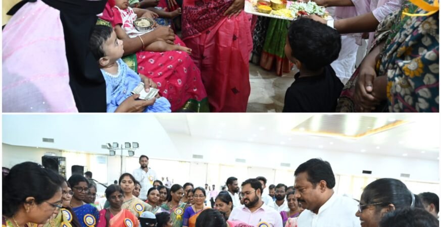 నిర్మల్ అక్టోబర్ 16 (పున్నమి ప్రతినిధి) జిల్లాలో పోషణ మాసం ముగింపు వేడుకలు గురువారం పట్టణంలోని దివ్య గార్డెన్స్ లో ఘనంగా జరిగాయి. మాతా, శిశు, దివ్యాంగుల సంక్షేమ శాఖ ఆధ్వర్యంలో జరిగిన ఈ కార్యక్రమంలో ఎమ్మెల్యే ఏలేటి మహేశ్వర్ రెడ్డి, జిల్లా కలెక్టర్ అభిలాష అభినవ్ ప్రధాన అతిథులుగా పాల్గొన్నారు. ముందుగా జ్యోతి ప్రజ్వలన చేసి కార్యక్రమాన్ని ప్రారంభించారు. ఈ సందర్భంగా ఎమ్మెల్యే మాట్లాడుతూ, పిల్లల్లో పోషకాహార లోపాన్ని నివారించేందుకు చేపట్టిన పోషణ మాసం కార్యక్రమం ఎంతో ఉపయోగకరమన్నారు. ఇది ఒక్క నెల కార్యక్రమంగా కాకుండా, ప్రజల్లో నిరంతరం పోషకాహార ప్రాముఖ్యతపై అవగాహన పెంచేలా చర్యలు కొనసాగించాలన్నారు. ప్రతి అంగన్వాడీ కేంద్రంలో పిల్లలకు పోషకాహారం అందుతోందని భరోసా కల్పించాలని అన్నారు. ప్రతి చిన్నారి అంగన్వాడీలో చేరేలా అధికారులు కృషి చేయాలని సూచించారు. అంగన్వాడీ పిల్లలను తమ బిడ్డలుగా చూసుకోవాలి: జిల్లా కలెక్టర్ అభిలాష అభినవ్. ఈ సందర్బంగా జిల్లా కలెక్టర్ మాట్లాడుతూ, గత నెల 17వ తేదీ నుంచి నేటివరకు అన్ని అంగన్వాడీ కేంద్రాల్లో పోషణ మాసం సందర్భంగా వివిధ కార్యక్రమాలు నిర్వహించడం జరిగిందని తెలిపారు. గర్భిణీలు, బాలింతలు, చిన్నారుల్లో పోషకాహార లోపాల నివారణపై విస్తృత అవగాహన కల్పించామన్నారు. జిల్లాలోని 931 అంగన్వాడీల్లో ప్రతిరోజూ పోషక విలువలతో కూడిన సంపూర్ణ ఆహారం అందిస్తోందని, వైద్యారోగ్య శాఖ సహకారంతో గర్భిణీ స్త్రీలు, చిన్నారుల్లో పోషకాహార లోపాన్ని నిర్మూలించే చర్యలు కొనసాగుతున్నాయని వివరించారు. అంగన్వాడీ టీచర్లు పిల్లలను తమ సొంత బిడ్డలుగా చూసుకోవాలని, బాల్యంలో పోషకాహార లోపం అధిగమిస్తే భవిష్యత్తులో పిల్లలు శారీరకంగా, మానసికంగా దృఢంగా ఎదిగి, దేశ నిర్మాణానికి తోడ్పడతారని తెలిపారు. కార్యక్రమాన్ని విజయవంతంగా నిర్వహించిన అంగన్వాడీ టీచర్లు, సిబ్బందిని ఈ సందర్బంగా కలెక్టర్ అభినందించారు. స్థానిక సంస్థల అదనపు కలెక్టర్ ఫైజాన్ అహ్మద్ మాట్లాడుతూ, జిల్లాలోని అంగన్వాడీల్లో వందశాతం పిల్లలకు పోషకాహారం అందుతోందని, శాఖకు సంబంధించిన సూచికల్లో నిర్మల్ జిల్లా రాష్ట్రంలో అగ్రస్థానంలో ఉందని తెలిపారు. భవిష్యత్తులో అన్ని సూచికల్లో మెరుగైన స్థానాన్ని నిలబెట్టేలా కృషి చేస్తామని తెలిపారు. కార్యక్రమంలో అంగన్వాడీ టీచర్లు పోషకాహారంపై నాటికలు, పాటల ద్వారా అవగాహన కల్పించారు. గర్భిణీ స్త్రీలకు పండ్లు, సారెలు పంపిణీ చేసి సామూహిక సీమంతం నిర్వహించగా, చిన్నారులకు అన్నప్రాసన జరిపారు. కలెక్టర్, ఎమ్మెల్యేలు పోషకాహార స్టాళ్లను పరిశీలించి, టీచర్ల సృజనాత్మకతను ప్రశంసించారు. ఈ కార్యక్రమంలో డీఈఓ భోజన్న, డిఆర్డీవో విజయలక్ష్మి, మున్సి